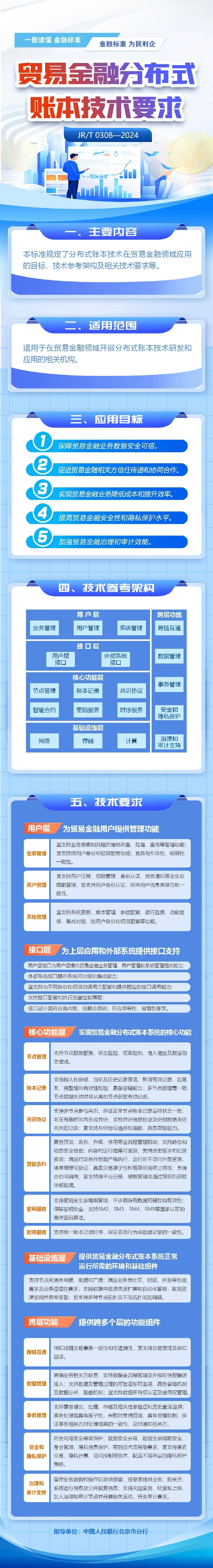 今天推出的是“一图读懂 金融标准”系列第1篇,为大家解读《贸易金融分布式账本技术要求》(JR/T 0308—2024)。