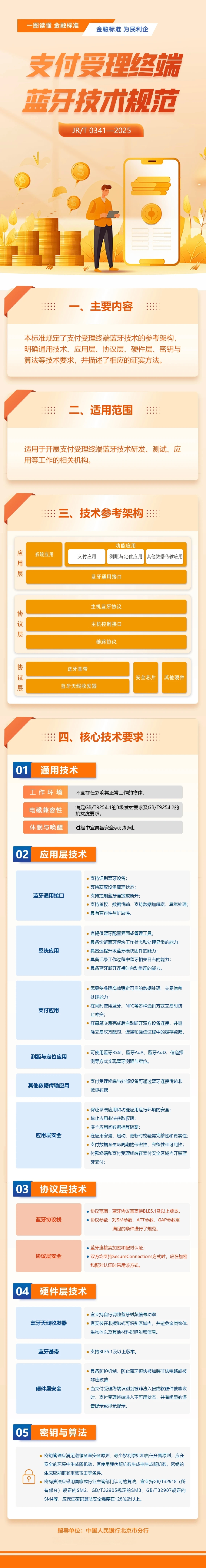 今天推出的是“一图读懂 金融标准”系列第2篇,为大家解读《支付受理终端蓝牙技术规范》(JR/T 0341—2025)。